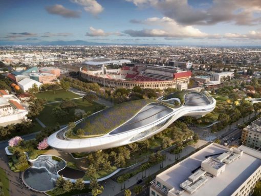 Walking past Los Angeles’ Exposition Park these days, you can’t miss the massive sculptural form rising from what used to be just another parking lot….