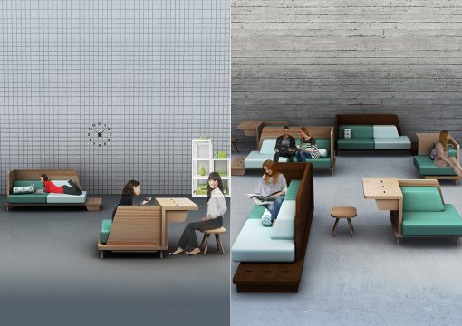 Created for public spaces, LOOP is a laptop-friendly chair designed so that when the backrest is flipped it turns into a desktop. Both set-ups keep…