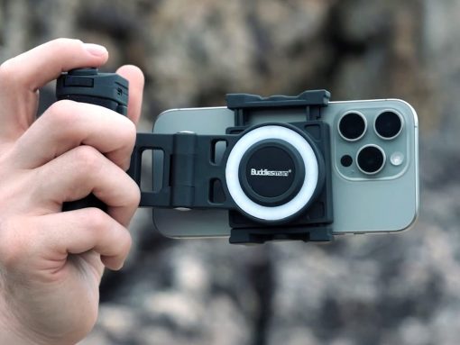 A shutter button, a built-in gimbal for landscape and portrait shooting, a zoom wheel, an integrated LED ring light, a tripod setting, and even an…