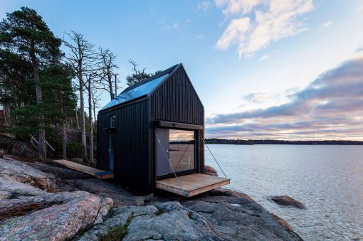 This off-grid cabin is a solar-powered, uses locally sourced timber and features a triangular roofline!