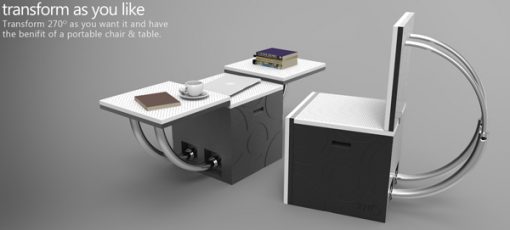 Named “270°” for the degree by which its 3 circular pipe mechanisms swing, this functional stool design is actually an all-in-one chair, desk and table!…