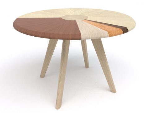 Just as the name suggests, the Wood-con-fusion table fuses wood, veneer and formica leftovers that are literally collected off the floor of local carpentry studios….