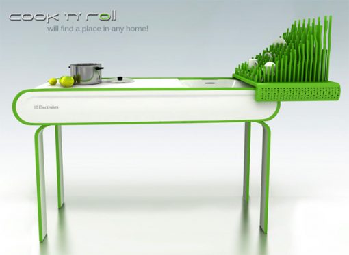 The Cook n’ Roll is super compact but has all the necessary equipment for basic food prep and cleanup – cooktop, dishwasher, sink, oven, storage…